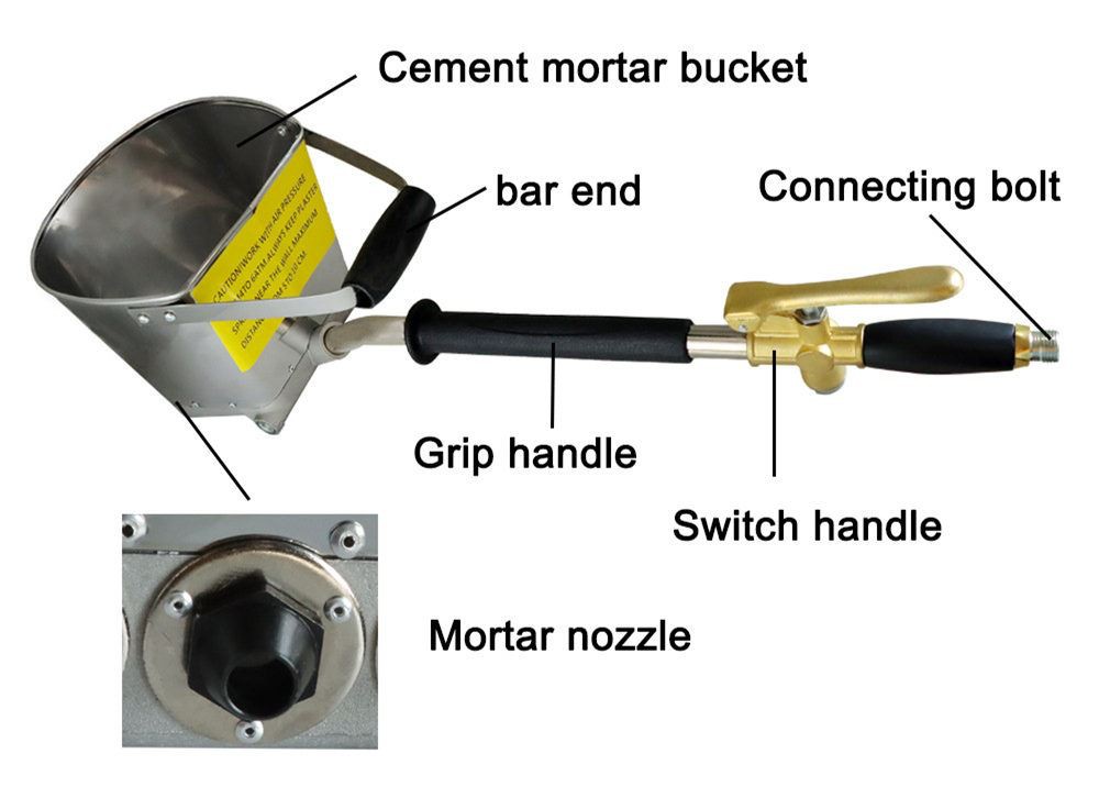 Razpršilec za stensko malto je nova generacija brizgalne barve profesionalnega brizganja za cement, vodno blato, apneno kašo, vodoodporno malto in druge tanke materiale, ki pršijo konstrukcijo z množilcem učinkovitosti! Uporablja se lahko za omet hiše s štukaturami, tradicionalno ometanje štukature, kot so enoslojni ali trislojni štukature ali GFRC, nanašanje ometa, štukature s trdim premazom, EIFS, majhnega brizganega betona, papirnega betona, mešanic arthen itd.